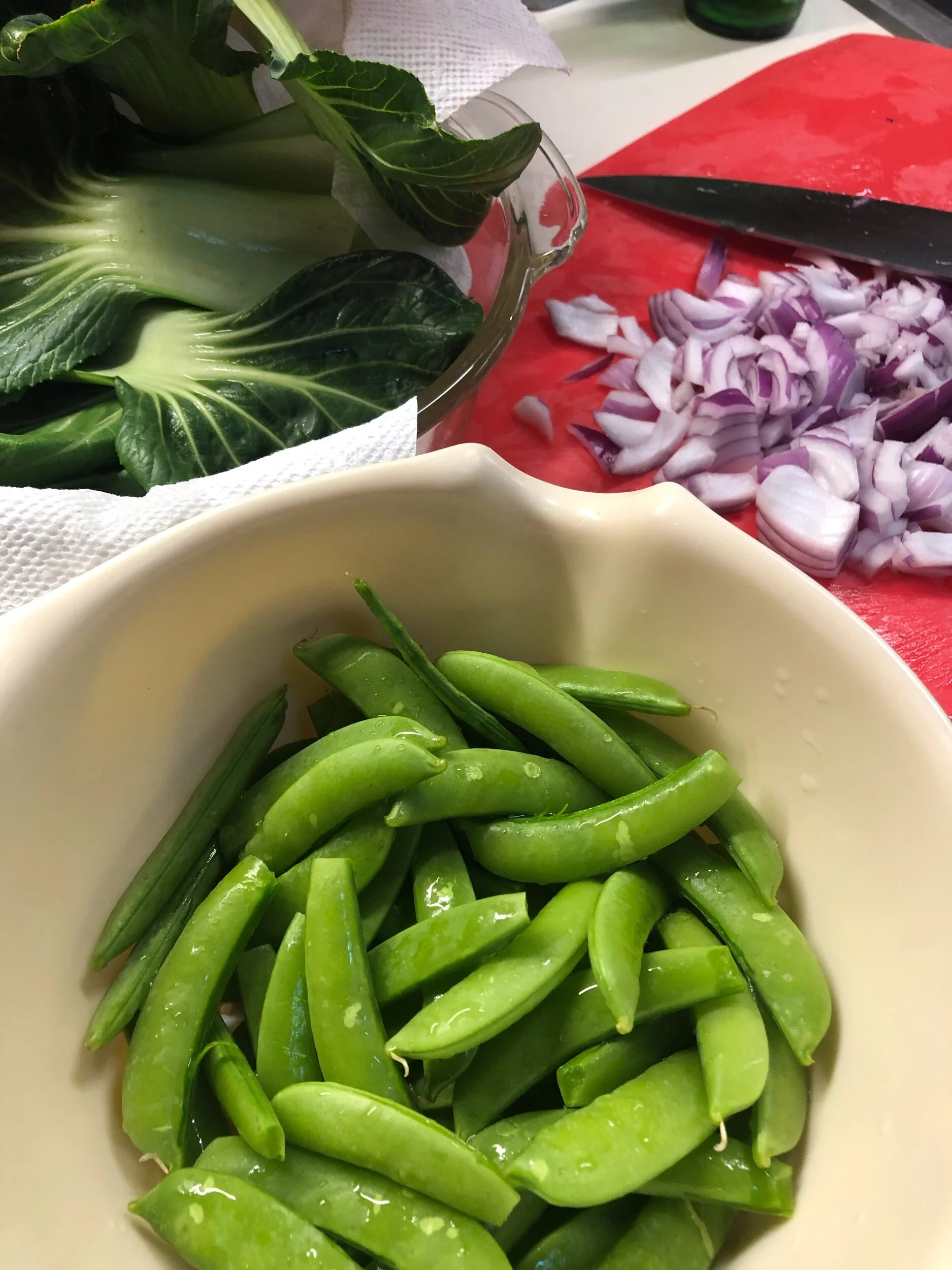 Cook vegetables until bok choy leaves are wilted, 5-7 minutes, stirring frequently.